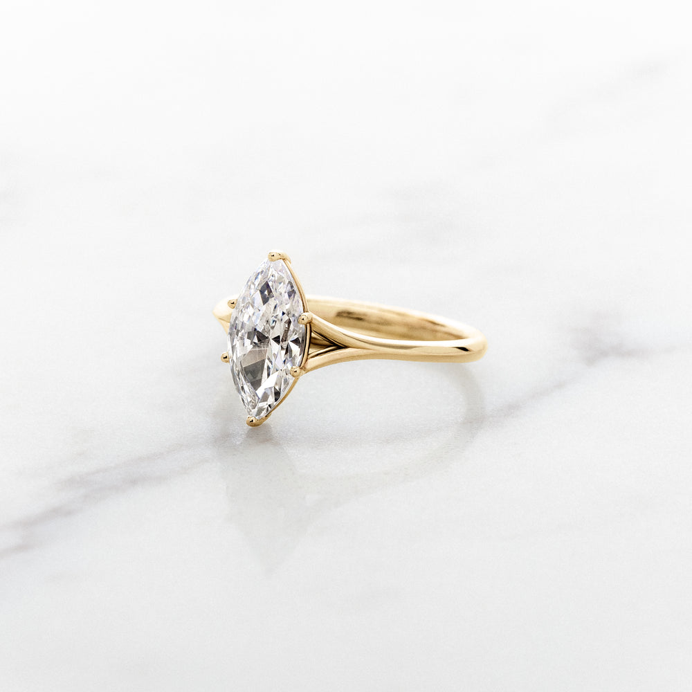 Focal Stone: Orchid works with focal stones of any shape or size, either rose cut or traditional faceting! These images show a 12x6mm marquise, or the equivalent of an approximately 2.00ct marquise diamond. For a smaller focal stone, check out the Orchid set with a 1or 1.5ct focal!