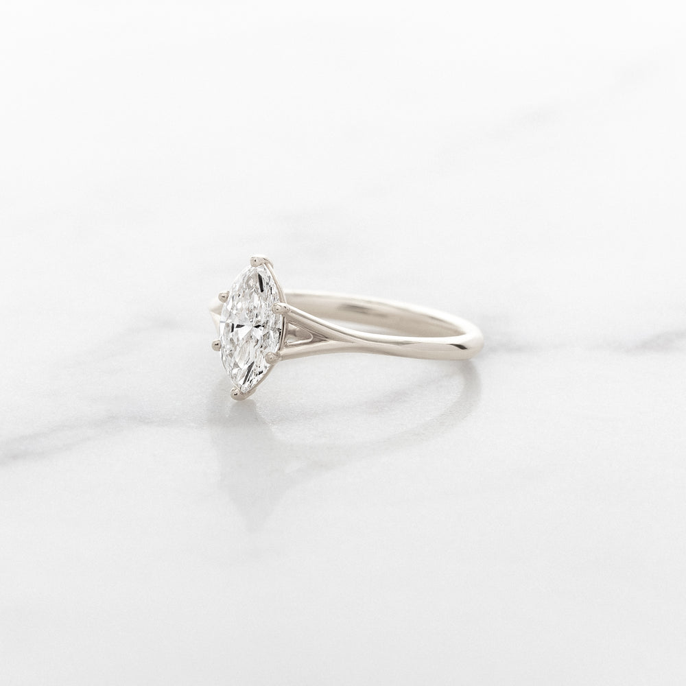 Focal Stone: Orchid works with focal stones of any shape or size, either rose cut or traditional faceting! These images show a 10x5mm marquise, or the equivalent of an approximately 1.00ct marquise diamond. For a larger focal stone, check out the Grande Orchid, which is set with a 2 or 2.5ct focal!