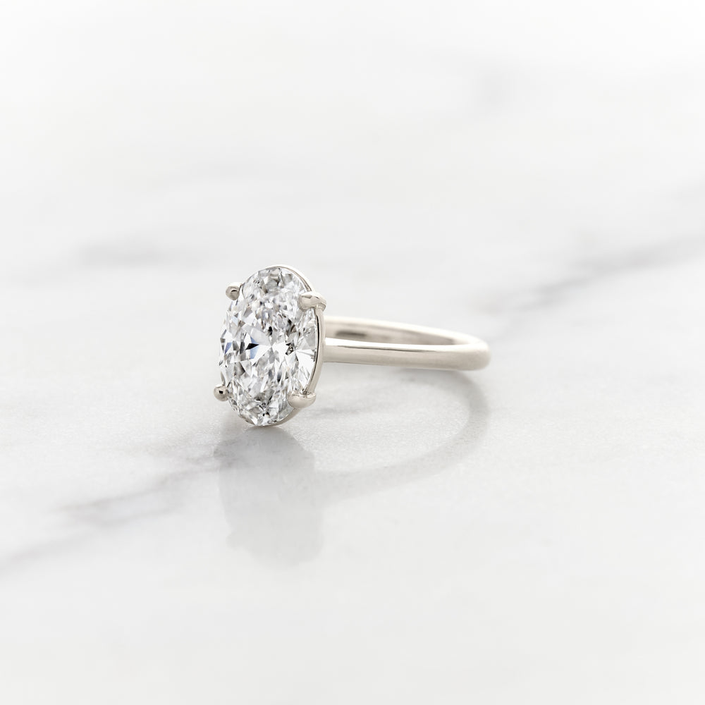 Our straight-to-the-point, all-about-the-focal, iconic solitaire. A lofted head allows any straight band to stack with this ring, and it looks phenomenal with any style you could dream of!