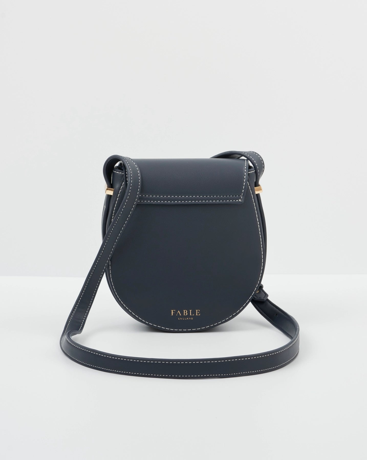 Fable Swooping Swallows Navy Mini Saddle Purse