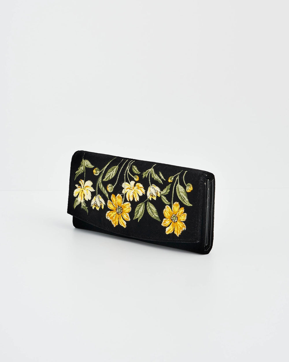 Fable Botanical Black Velvet Embroidered Foldover Bag