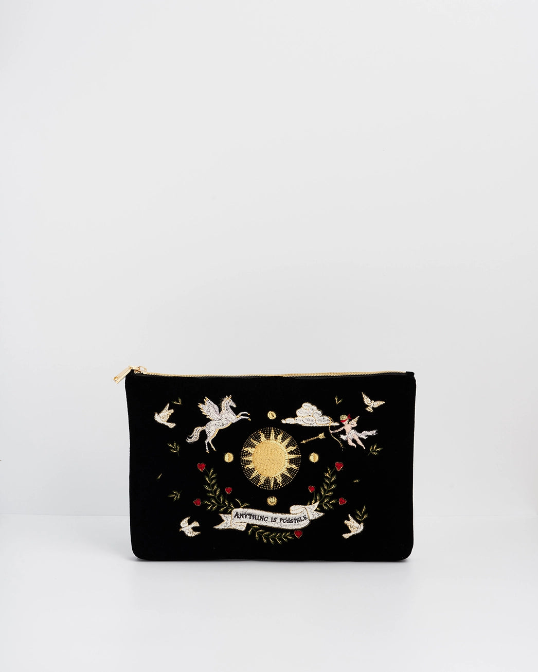 Fable Black Celestial Velvet Embroidered Pouch