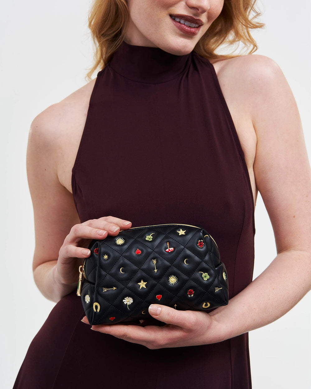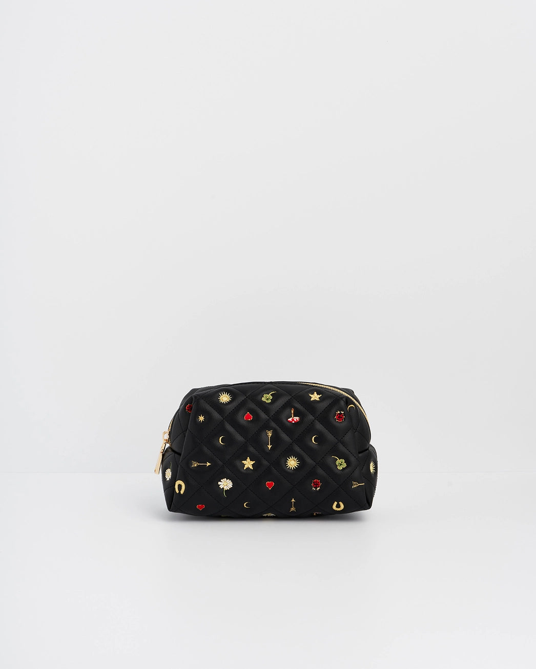Fable Black Quilted Motif Embroidered Pouch