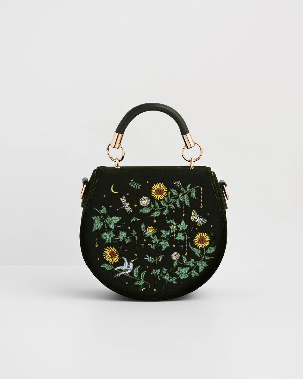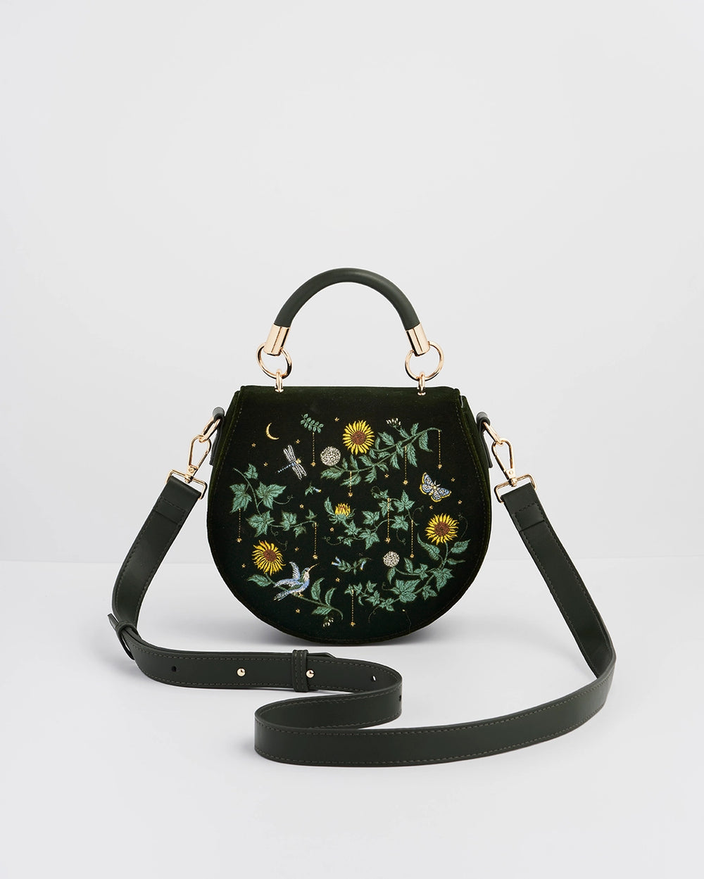 Fable Dove & Floral Star Velvet Embroidered Saddle Bag