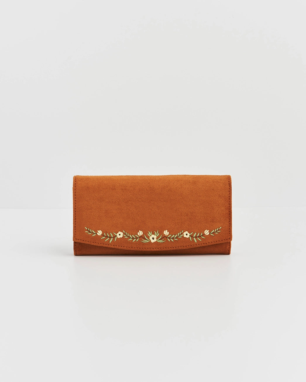 Fable Tan Faux Suede Embroidered Purse