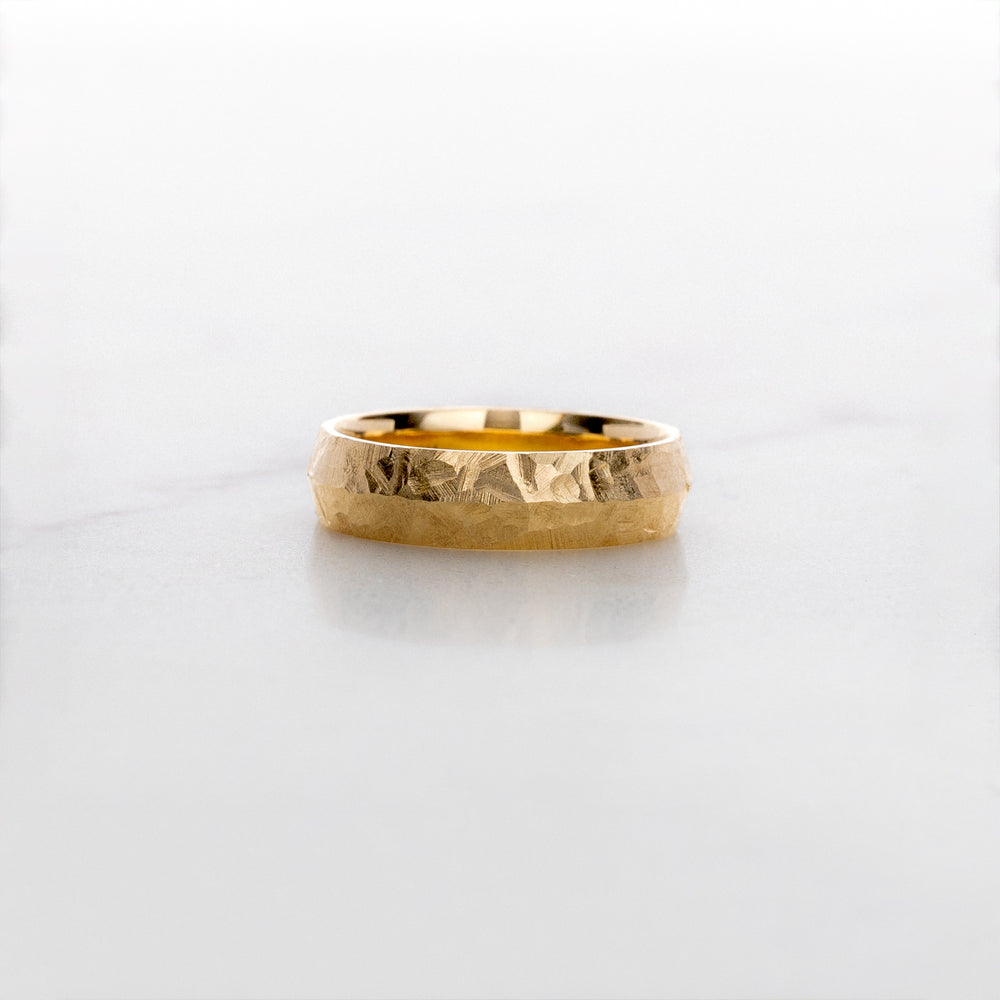 Our Knife Edge Band with a Stone Finish. Each ring is carved by hand for a one of a kind, rustic look.