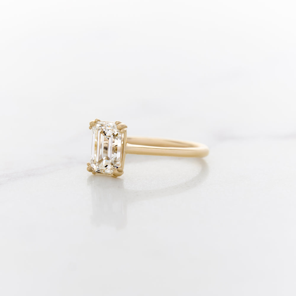 A classic emerald cut lab grown diamond held in our stylized Tulip prongs - an instant icon.