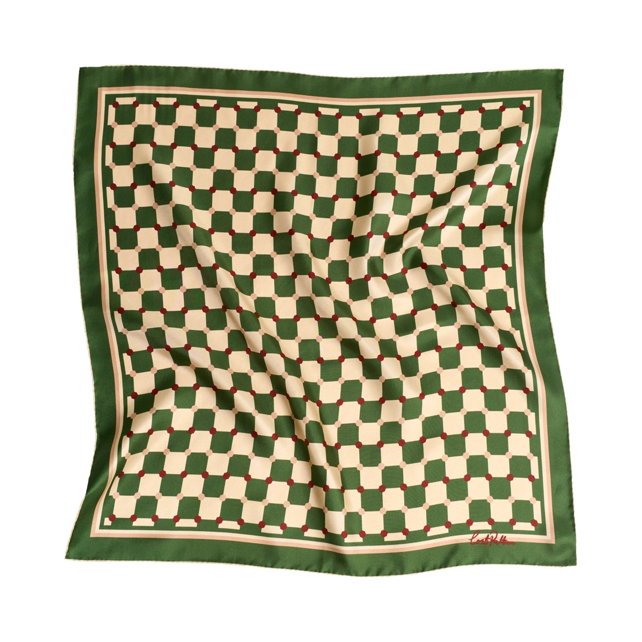 Checkerboard Silk Bandana Scarf - Green